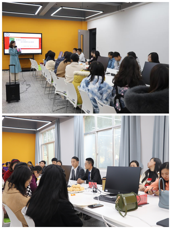 为锻炼学生的思维、逻辑以及语言组织能力,进一步培养和提升学生的学术思维和学术习惯,12月16日下午2:00在二实验楼ERP实训室举行管理学院学术沙龙,此会场沙龙以“管理类大学生应该如何拥抱目前社会的变革?”为主题开展了学术沙龙活动。本场沙龙活动是我院的三个专业(人力资源管理、市场营销、旅游管理)的师生开展的。本专场由覃晓梅、饶蓝老师主持,参加活动的有管理学院的老师们学生们以及特邀嘉宾长沙贝壳找房人力总监李建哲。