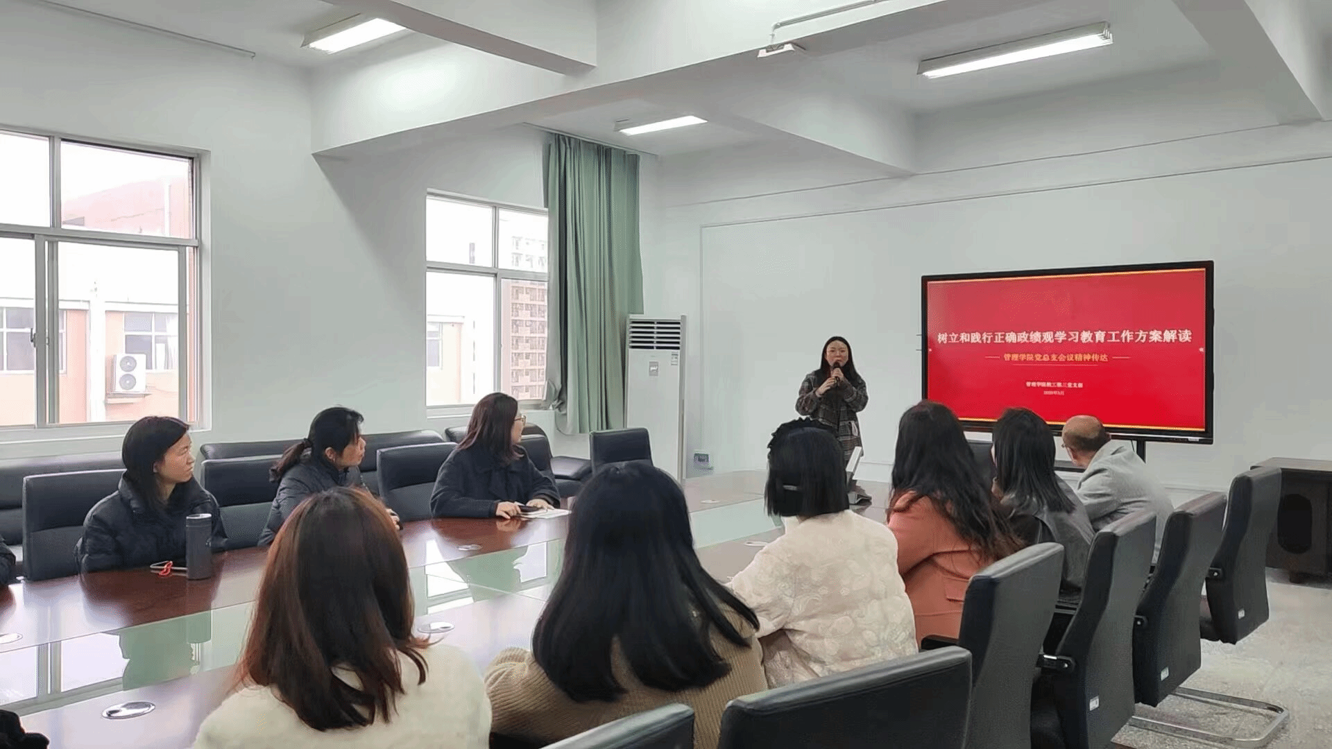 为深入学习贯彻习近平总书记关于树立和践行正确政绩观的重要论述,扎实推进学习教育落地见效,2026年3月19日下午,管理学院教工第三党支部在第一会议室开展三月主题党日学习活动,全体党员参会。