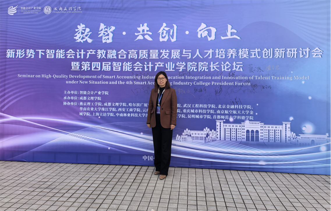 1月13日,管理学院学院副院长陈莉赴成都参加新形势下智能会计产教融合高质量发展与人才培养模式创新研讨会暨第四届智能会计产业学院院长论坛。