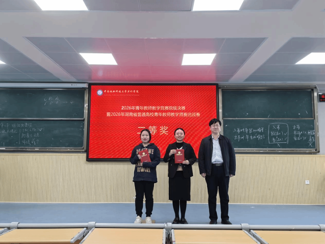 3月11日,2026年青年教师教学竞赛院级决赛暨湖南省普通高校青年教师教学竞赛选拔赛圆满落幕。管理学院教师叶羽琼、禹文婷凭借出色的教学能力和扎实的专业素养,在众多参赛选手中脱颖而出,荣获二等奖。