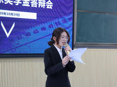 答辩开始前,主持人分别介绍了此次答辩的评委和答辩流程。参与此次答辩的学生有9人,他们分别是徐诗璇、唐梦婷、李佳豪、周书仪、杨谨华、曾甜、蒋淑芳、曾婷婷、张子怡。候选人抽签决定答辩顺序,以PPT的形式,分别从思想素质、学习成绩、校内外实践经历等多个方面展示了自己过去的努力和收获,客观地阐述了自己获得国家奖学金的核心竞争力。