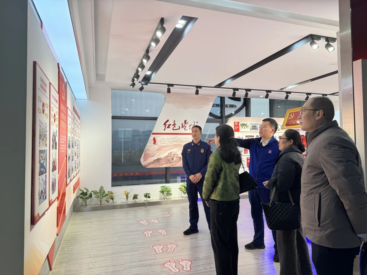 在望城区消防救援大队党委书记、政治教导员燕路和魏清指导员的引领下,法学教研室团队首先参观了以雷锋精神为主题的消防文化教育基地。通过"信念能量站""锋范班""锋之家"等主题区域,立体化展现了这支多次获评"全国青年文明号"的模范队伍如何将雷锋精神转化为守护人民安全的行动密码。
