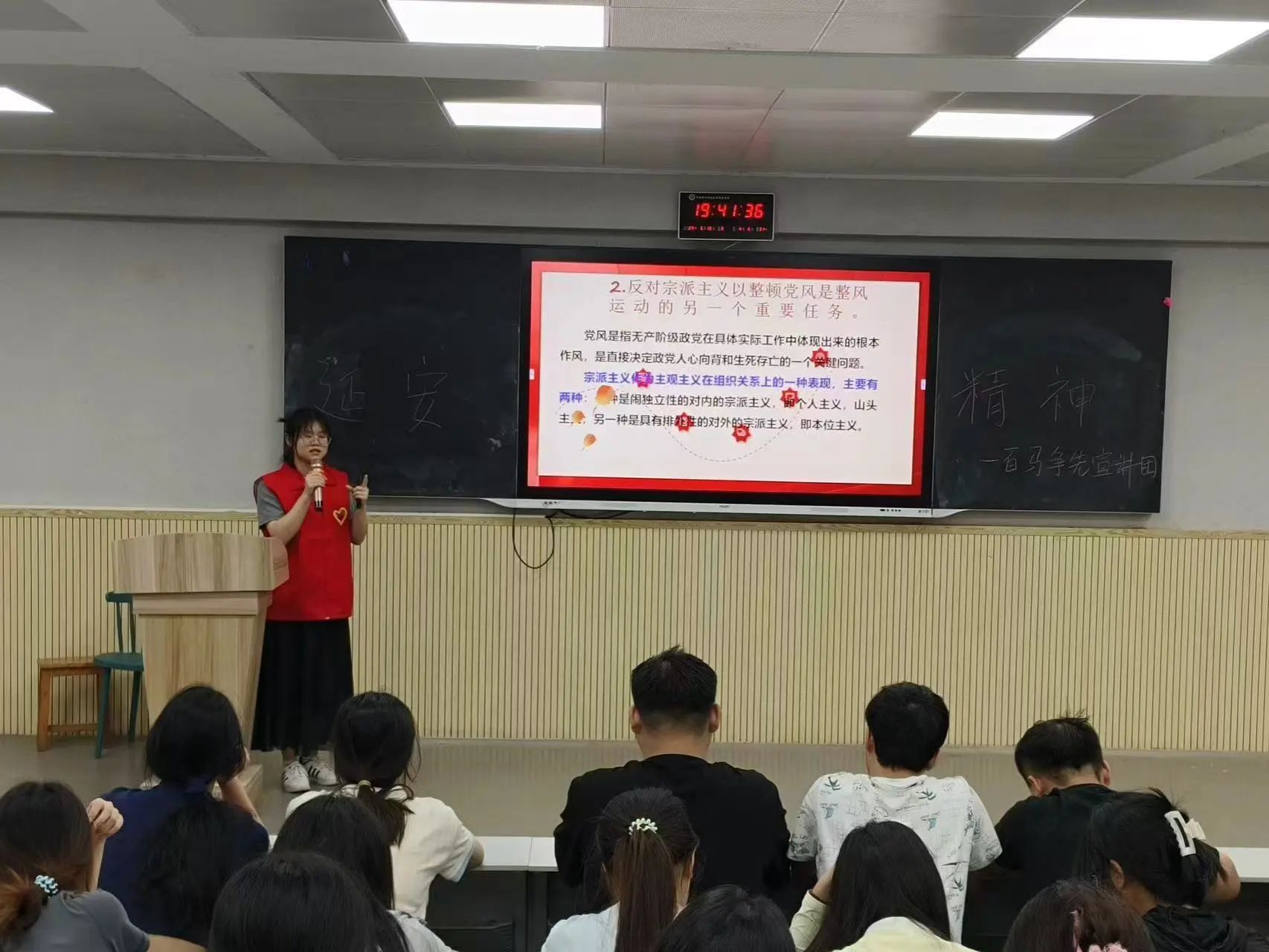 为了不断拓宽宣讲的影响力,2024年5月15号的第三次宣讲,我们通过讲述延安时期学习运动及整风运动,让同学们学习到了党员干部理论知识和政治觉悟提高的历程、党员干部素质提升的必要性和重要性。我们通过提问的方式,将宣讲内容以更加生动、直观的方式呈现给观众。