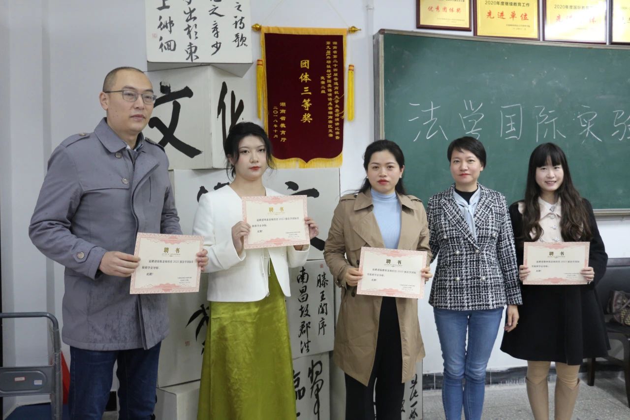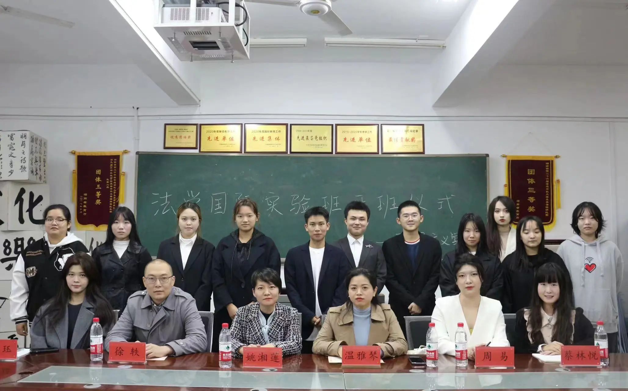 2023年11月10日,马克思主义学院举行法学国际实验班开班暨学业导师聘任仪式。副院长姚湘莲、法学教研室主任温雅琴、学业导师周易、徐轶、蔡林悦、国际导师黄珏及法学国际实验班全体学生参加此次活动。