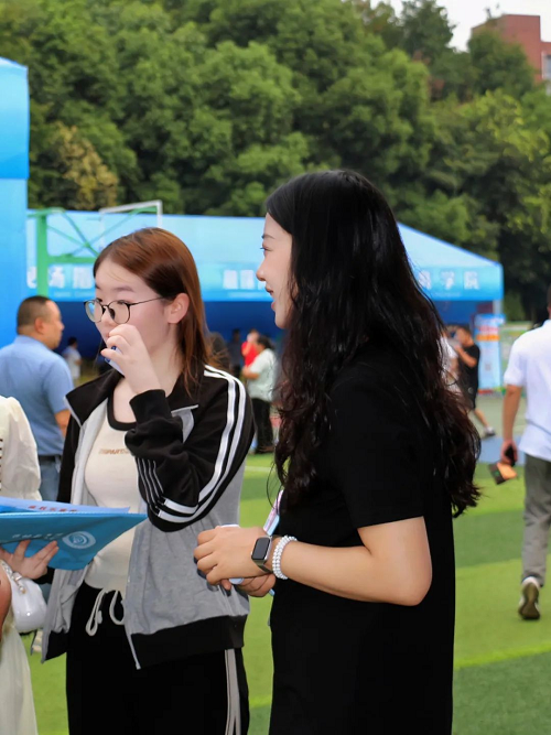 23级新生辅导员张伊丽、甘甜,静候迎新现场,热情问候报到新同学,为家长们耐心答疑解惑,如沐春风的关怀,有效遣散了初来乍到的距离感。