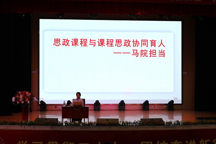 中南大学马克思主义学院副院长曹清燕教授作《思政课程与课程思政协同育人——马院担当》主题讲座。围绕协同育人的要义,夯实思政课程育人,实践课程思政育人三个方面具体展开阐述。协同的要义是下好育人一盘棋、结成育人一张网、拧成育人一股绳。夯实思政课程育人则需要,坚持八个相统一,走出思想误区,练就过硬本领。她表示实践课程思政育人,一是要心怀课程思政,立德树人讲政治;二是要研究课程思政,潜心研究探索规律;三是要实践课程思政,教书育人讲实效;四要辐射课程思政,协同育人扩大影响。