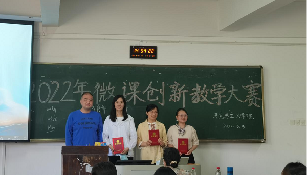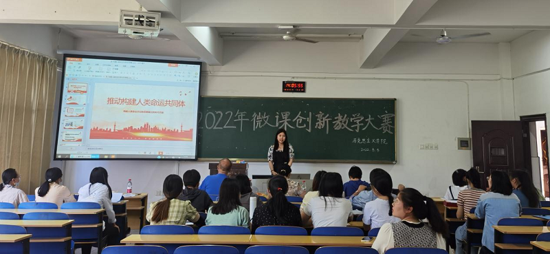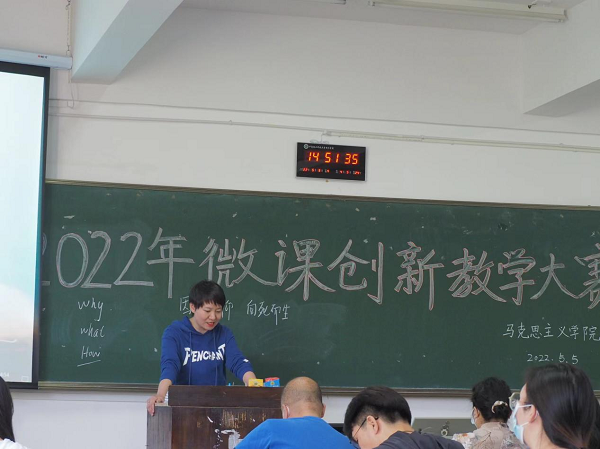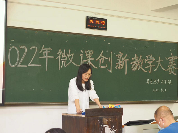 为促进师资队伍建设,激励教师刻苦钻研教学方法,形成人人“打造金课”的良好氛围,马克思主义学院于2022年5月5日下午在2307教室举行第一届青年教师微课创新教学竞赛。