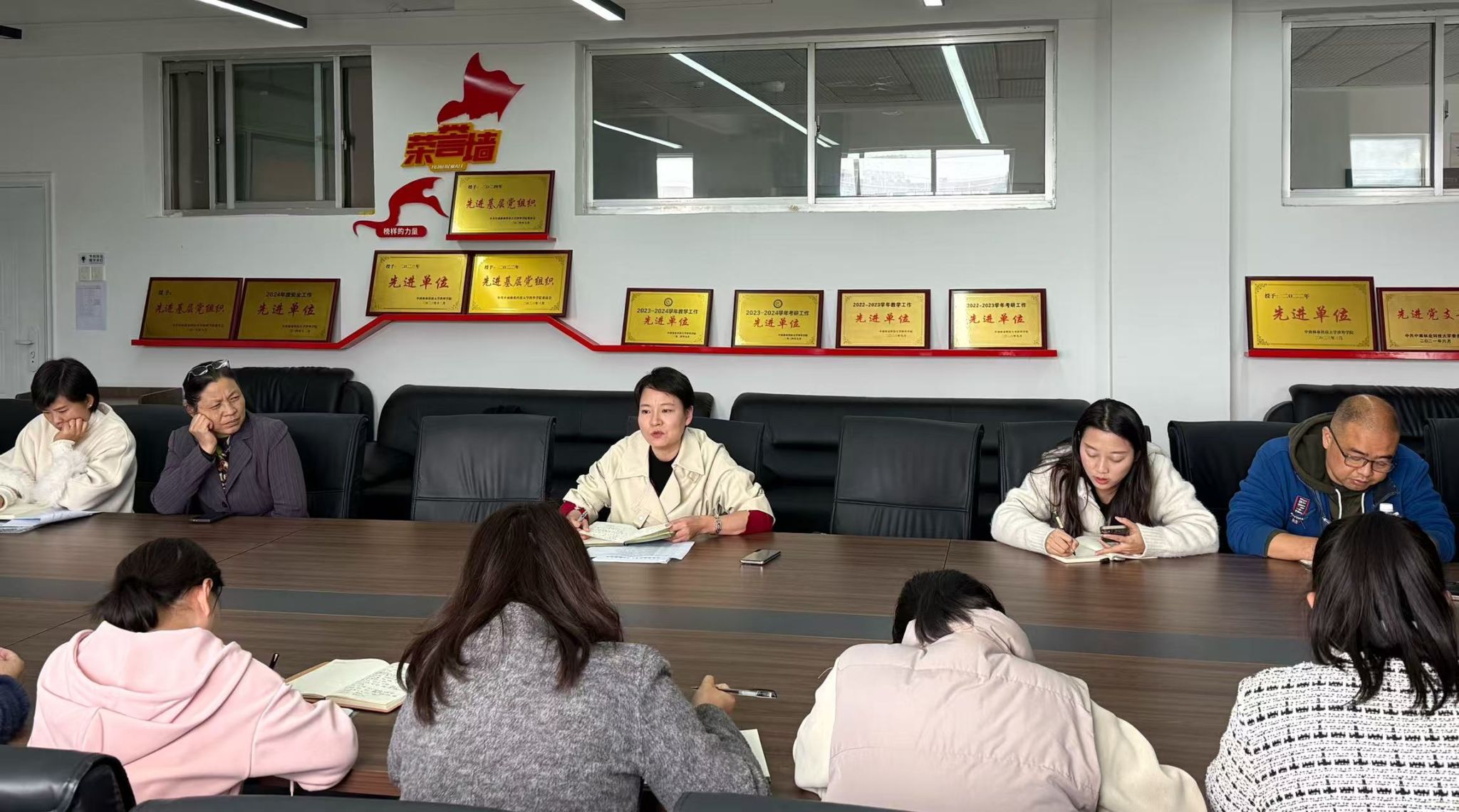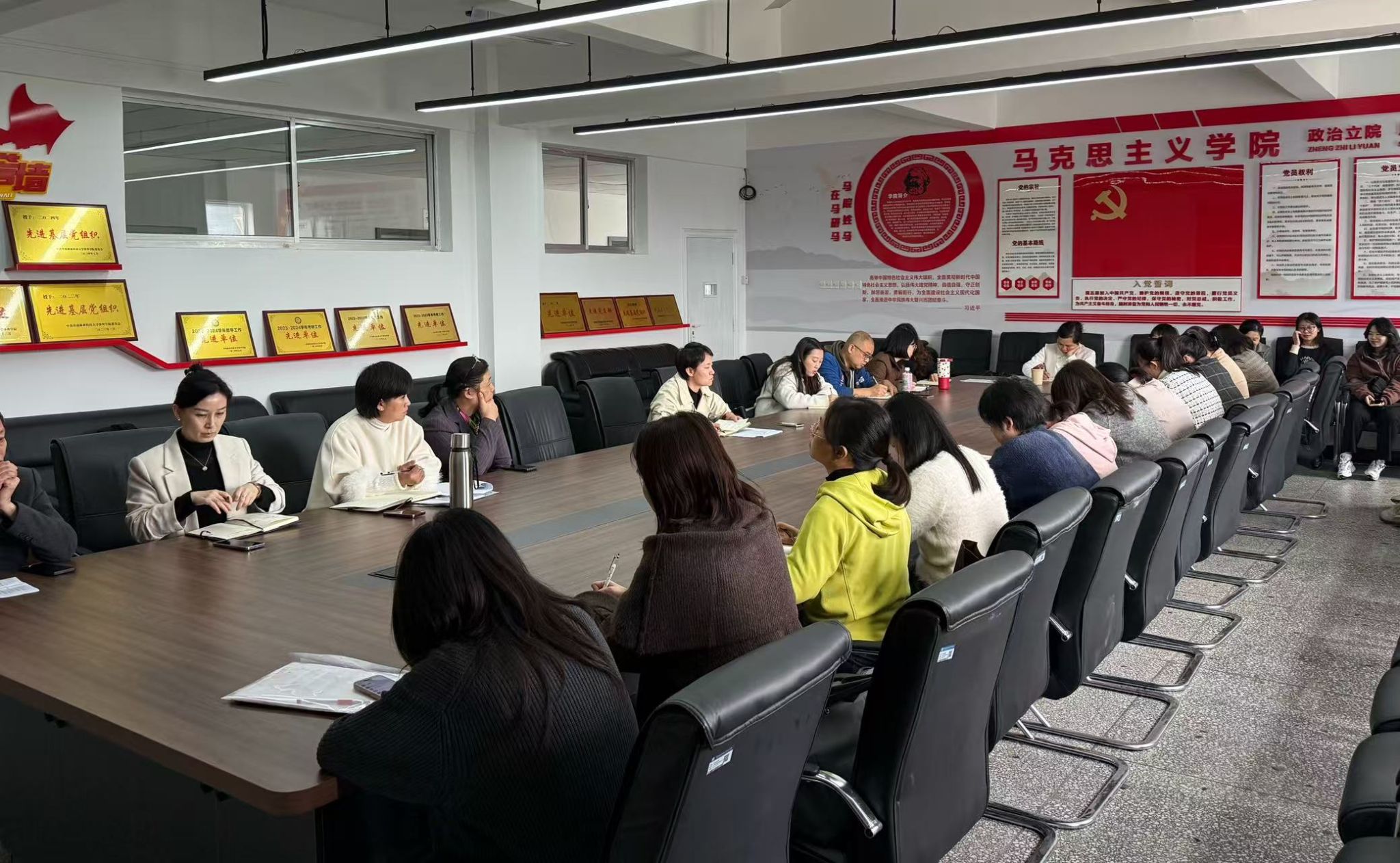 2025年11月12日下午,马克思主义学院在明德楼1303会议室召开了教职工例会,会议由马克思主义学院副院长姚湘莲主持,思政教研室、马克思主义理论教研室及思想政治教育专业教研室所有教师参会。