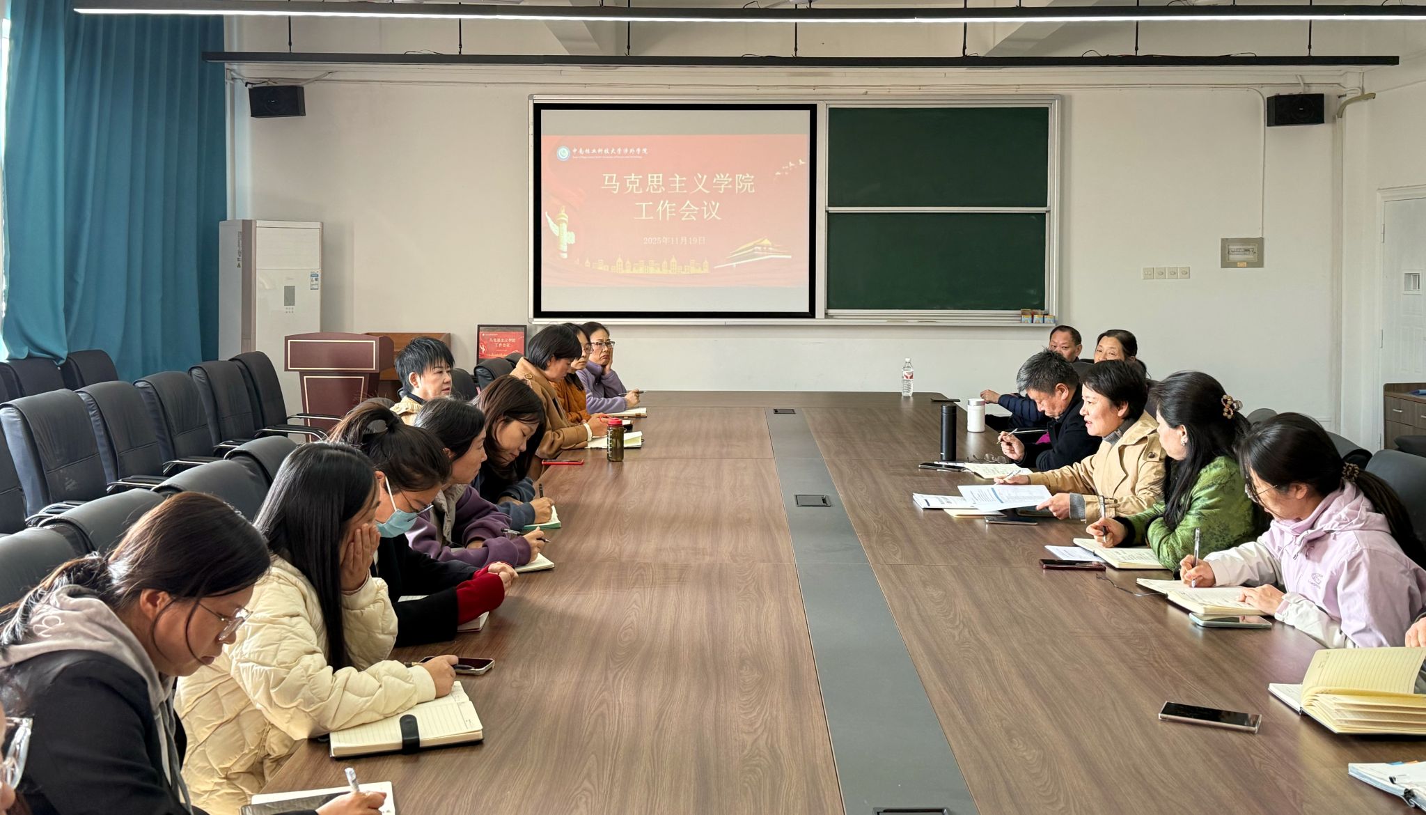 2025年11月19日下午,马克思主义学院在明德楼1303会议室召开了教职工例会,会议由马克思主义学院副院长姚湘莲主持,马院院长刘凤健、党总支书记徐婷、院长助理温雅琴、各教研室主任及全体教职工参会。