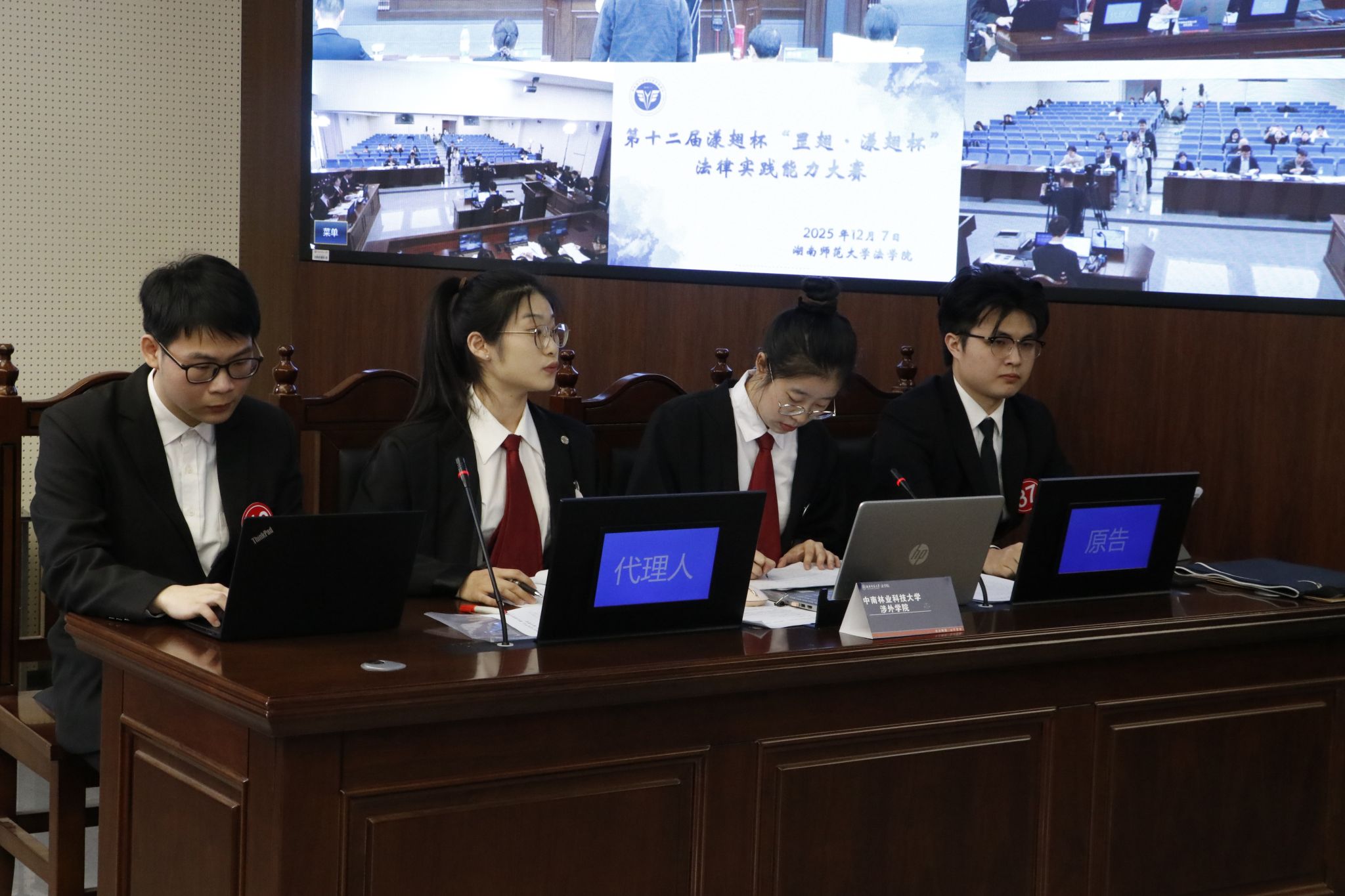 比赛完全依照真实庭审流程进行,涵盖了起诉状与答辩状撰写、证据交换、法庭调查、法庭辩论等全部环节。各支代表队分别扮演“原告方”与“被告方”,在由华南农业大学学生代表组成的合议庭面前,展开精彩交锋。庭上,选手们逻辑清晰、据理力争;庭下,团队协作、精心筹备,充分展现了当代中国未来法律人将理论知识与司法实践相结合的卓越潜力。