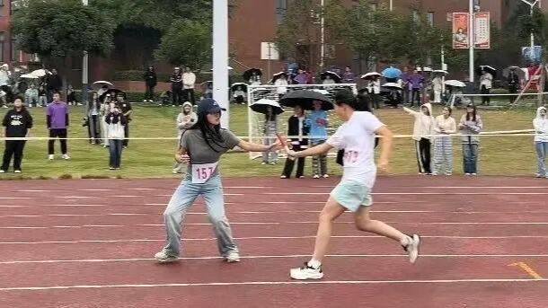 赛场上,即便阴雨连绵,红色塑胶跑道依旧格外醒目。看台上,欢呼声、呐喊声此起彼伏,震耳欲聋的加油声浪一波高过一波,交织成激昂的青春交响乐。