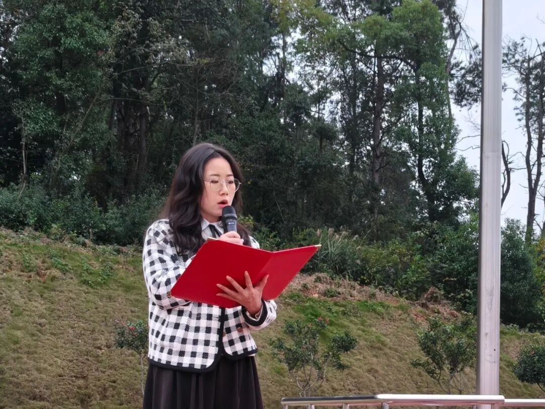 升旗仪式后,马克思主义学院党总支书记徐婷老师发言,分享了对建国76周年成就的体会、对爱国精神的理解及青年践行报国初心的决心。