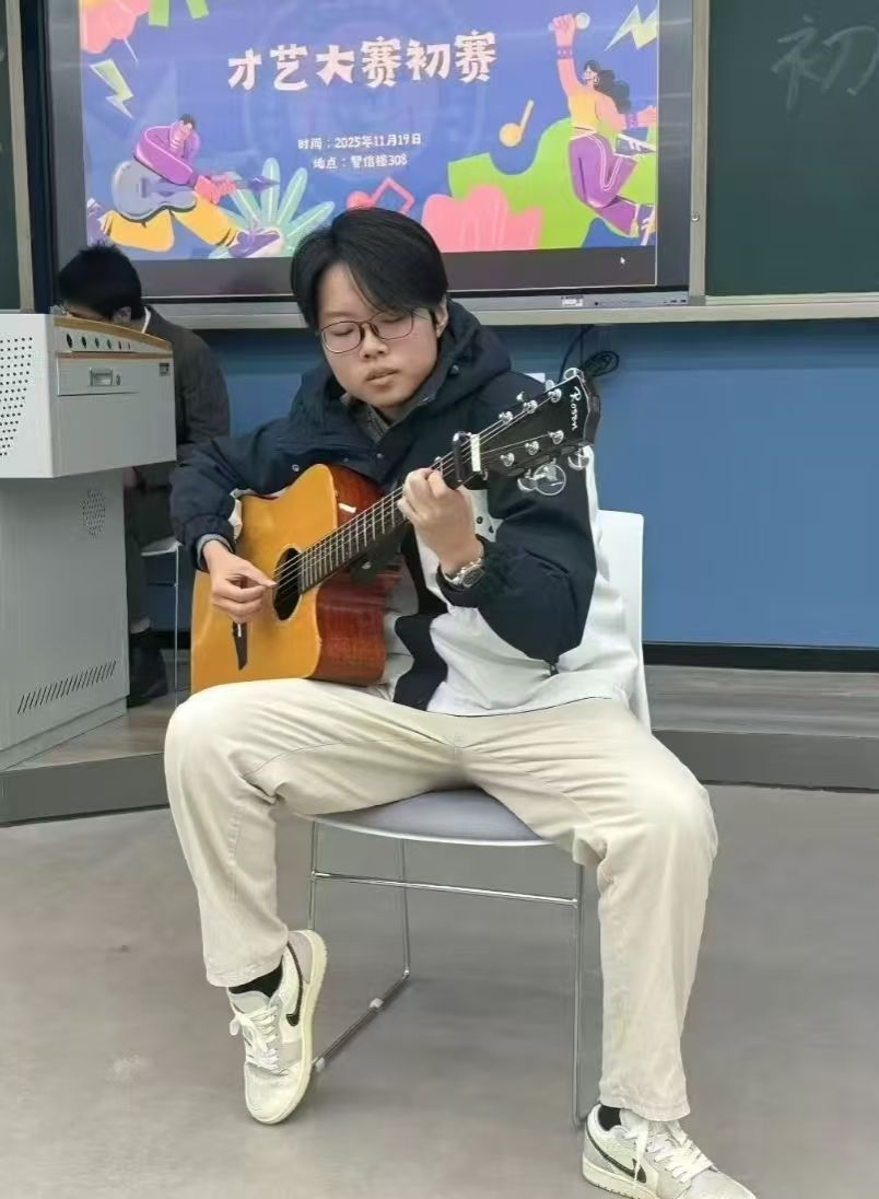 表演者刘烨纯同学带来的歌曲《阳光下的星星》,旋律像碎金落在肩头,干净又明亮。表演者周嘉玲同学带来的歌曲《斑马,斑马》,既有属于青年的激昂,又有属于民谣的温柔。表演者汤慧霞同学带来的歌曲《忽然之间》,把细碎的感动续写成了一段安静的温柔。