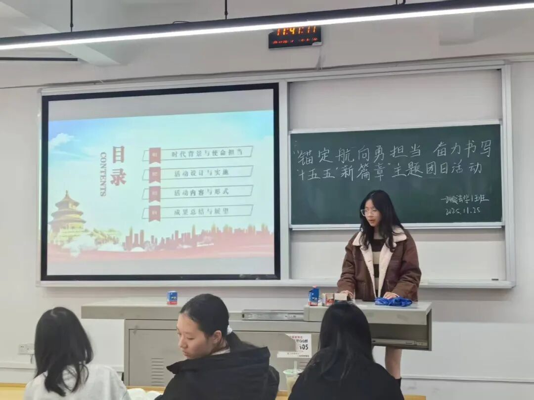 25级思政1班在团支书刘劲怡的组织下,开展“锚定航向担使命,奋楫扬帆启新程”主题团日活动。活动围绕紧扣时代脉搏,将“十五五”规划精神与青年成长需求深度融合展开。