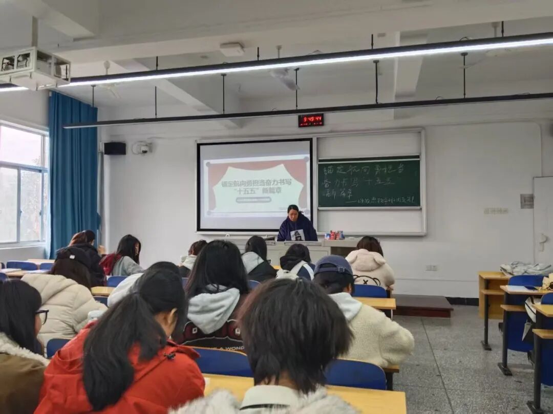 24级思想政治教育2班举办“青春锚定新航向,担当书写‘十五五’”主题团日活动,团支书李欣悦主持,引导同学们结合“十五五”规划和思政专业特色明确青春方向、勇担使命,勉励大家将个人理想融入国家发展,以实干为“十五五”建设、民族复兴贡献青春力量,同学们积极交流并坚定奋斗信念。