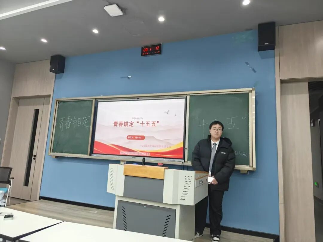 25级法学国际实验班在团支书周丰伟的组织下,开展“锚定航向勇担当奋力书写'十五五'新篇章”主题团日活动。“十五五”时期是我国基本实现社会主义现代化的关键五年,高校团组织作为引领青年、凝聚青年的核心阵地,需紧扣时代脉搏,将“十五五”规划精神与青年成长需求深度融合。本班将此次团日活动由青春与国家政策相结合。分为四个板块,展现当代青年面临的机遇与挑战和如何实践,在硬核赛道中创新出自己的价值。