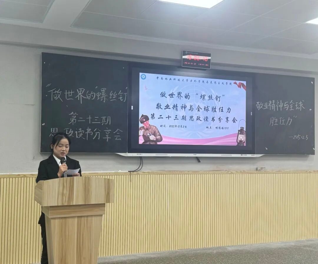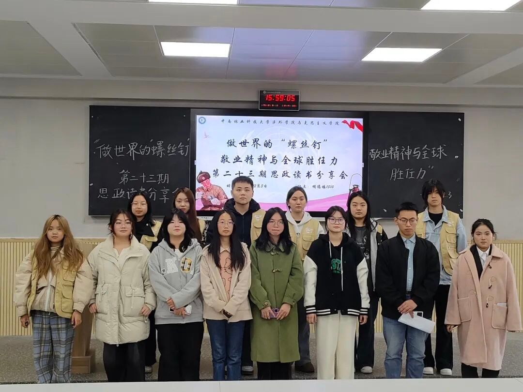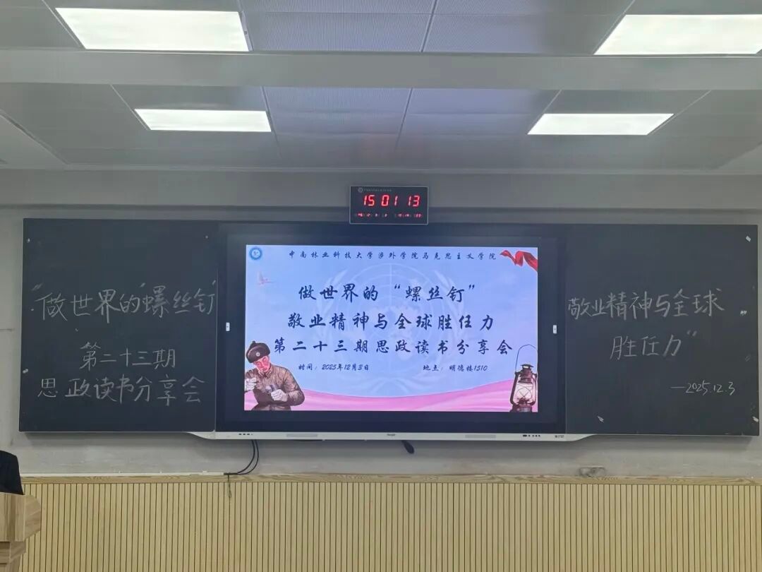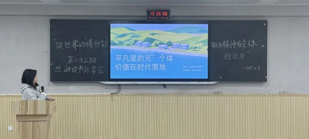 当最后一位选手的分享落下帷幕,“做世界的‘螺丝钉’——敬业精神与全球胜任力”第二十三期思政读书分享会也迎来圆满终点。但我们相信:对敬业精神的践行、对全球胜任力的提升,永远没有终点。期待每一位同学都能把书中的启示转化为行动,在各自的领域里做一颗“靠谱的螺丝钉”,既牢牢扎根,又能链接世界,用青春力量书写属于这个时代的敬业故事。