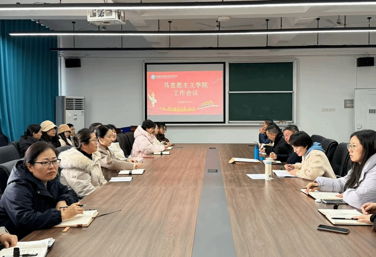 2026年3月4日上午,马克思主义学院在明德楼1303会议室召开了新学期教职工会议,会议由马克思主义学院副院长姚湘莲主持,马院院长刘凤健、党总支书记徐婷、院长助理温雅琴、各教研室主任及全体教职工参会。