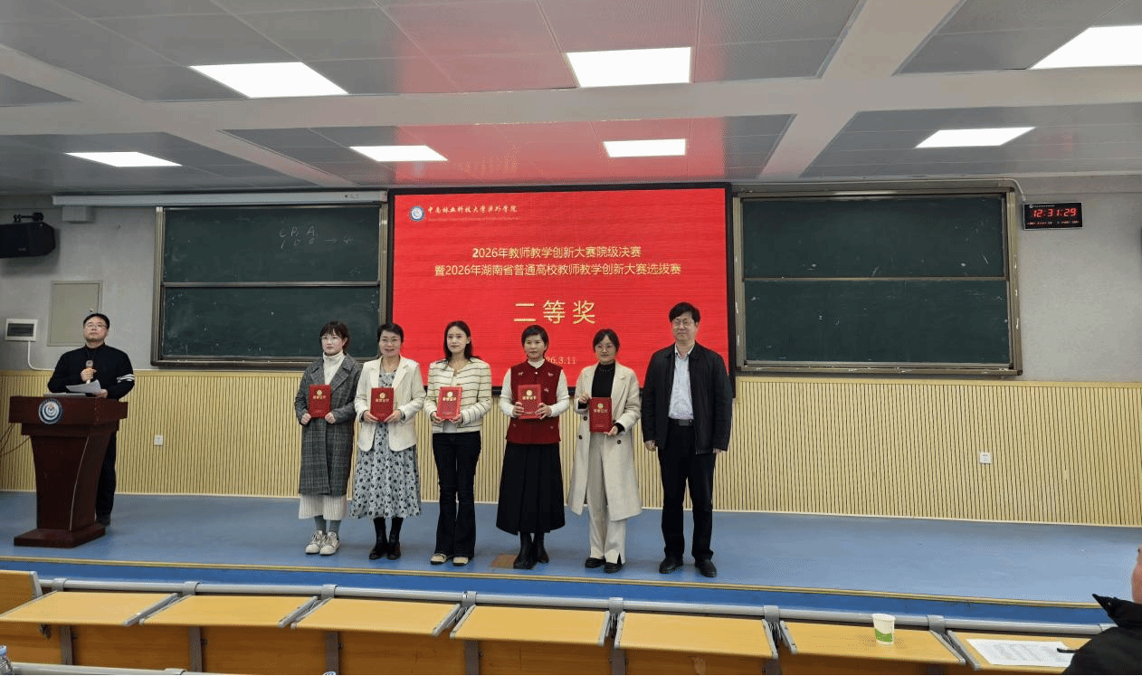 2026年教师教学创新大赛院级决赛暨湖南省普通高校教师教学创新大赛选拔赛,采用创新成果与教学展示相结合的方式综合评分。我院思政专职教师肖丽以“化省情为教学,本土化案例沉浸式融入‘马克思主义基本原理’课程教学创新”为参赛主题,深耕思政课堂教学改革,聚焦教学内容重构、教学方法创新与教学评价优化,将理论阐释、价值引领与实践育人有机融合,凭借成熟的创新成果与精彩的现场教学展示,荣获二等奖,彰显了我院思政教师的专业素养与创新能力。