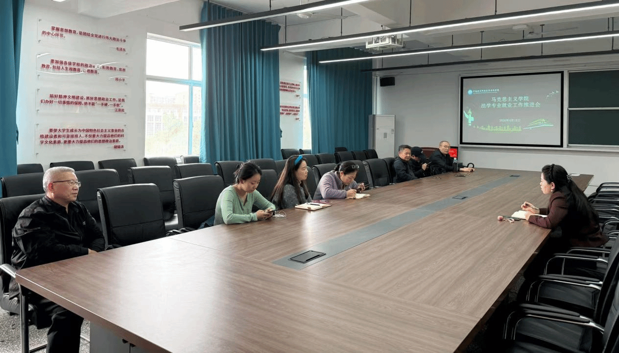 2025年4月15日下午,马克思主义学院在明德楼1303会议室召开法学专业就业工作推进会议,会议由马克思主义学院副院长姚湘莲主持,院长助理温雅琴、法学教研室主任及全体法学教师参会。