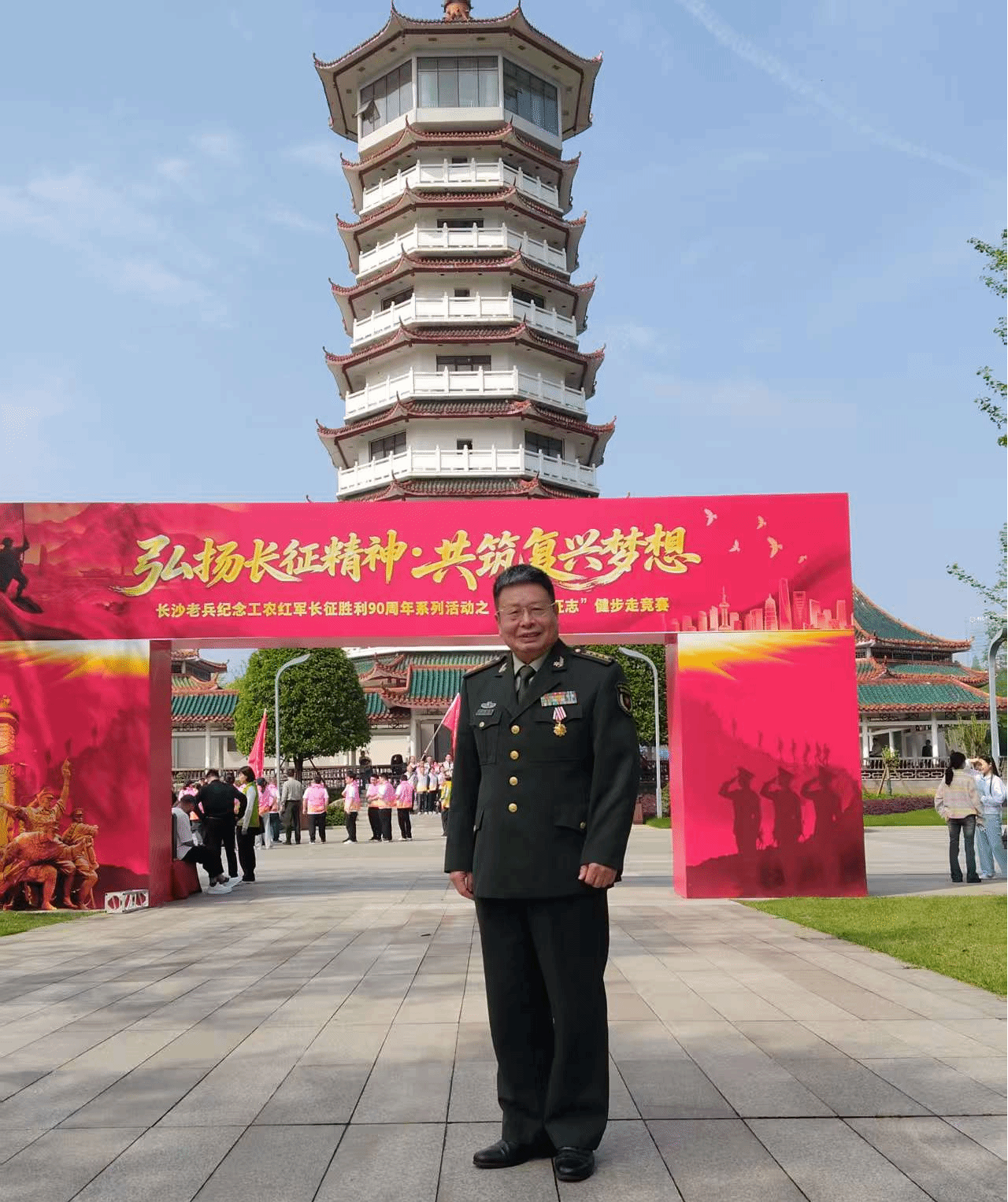 4月17日,长沙市退役军人事务局在湖南烈士公园隆重举行“弘扬长征精神·共筑复兴梦想”——长沙老兵纪念中国工农红军长征胜利90周年系列活动启动仪式暨“赓续长征志”健步走竞赛。我校马克思主义学院院长刘凤健教授作为二等功获得者,代表科大佳园军休干部身着戎装、精神抖擞地参加了此次活动。