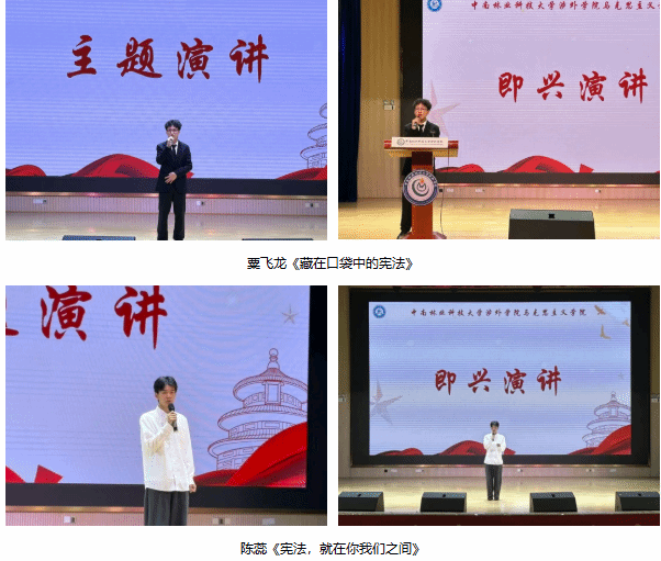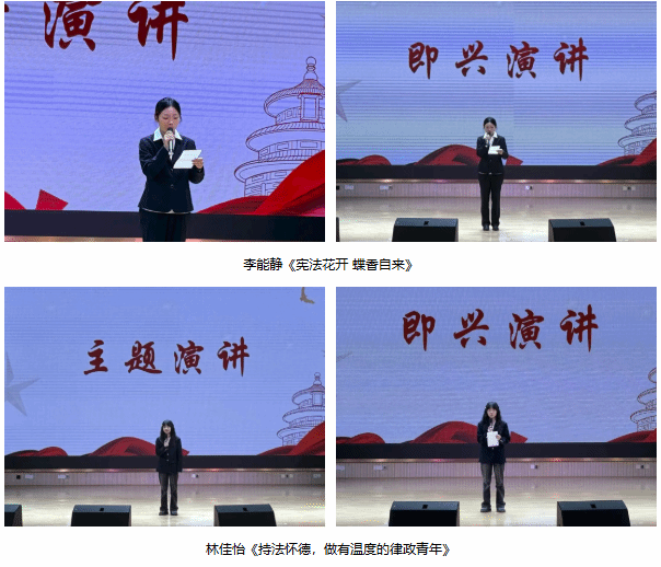 本次赛事设有主题演讲与即兴演讲两大环节,多维度综合考察选手的法治理论素养、临场思辨能力与语言表达水平。各参赛选手结合个人所学所思,带来一场场精彩的宪法主题分享;他们不仅深刻解读了宪法精神的时代内涵,还畅谈了新时代青年投身法治建设的责任与担当。