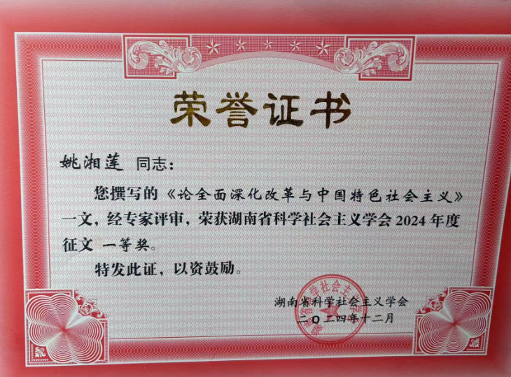 在本次学术年会征文中,我院院长刘凤健论文《国家安全是中国式现代化行稳致远的重要基础》,副院长姚湘莲论文《论全面深化改革与中国特色社会主义》均获一等奖。