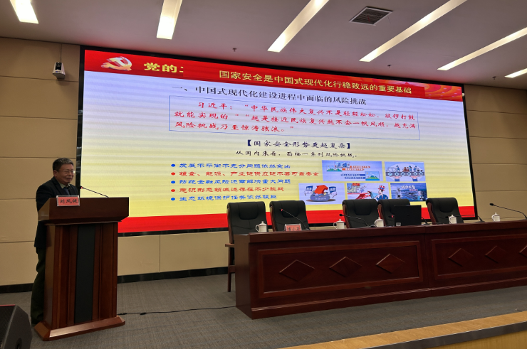 在学术研讨会上,我院院长刘凤健教授作了专家报告,主题为《国家安全是中国式现代化行稳致远的重要基础》。党的二十大报告提出了推进国家安全体系和能力现代化总要求。党的二十届三中全会提出了国家安全是中国式现代化行稳致远的重要基础。刘院长分别从中国式现代化建设进程中面临的风险挑战、没有安全的国内外环境就难以实现中国式现代化、推进国家安全体系和能力现代化的重点举措三个方面详细分析了国家安全形势更趋复杂,发展和安全利益面临重大挑战;并提出了推进国家安全体系和能力的重点举措,即坚持党对国家安全工作的绝对领导,建立健全维护国家安全的法律体系,严惩危害国家安全的犯罪行为,深化国家安全领域的国际交流与合作,大力提高全民国家安全意识。通过详实的数据和比较分析,清晰展示了中国目前面临的挑战与机遇,并充分激发广大人民群众维护国家安全的积极性和创造力,形成维护国家安全的强大合力。