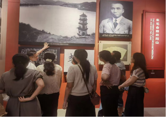 接下来参观了井冈山革命博物馆,在井冈山革命博物馆,大家通过观看历史文物、视频影像、聆听讲解,回顾了井冈山革命根据地创立、发展的光辉历程。一件件文物和照片,诉说着井冈山时期的往事;一幕幕场景,生动再现了“黄洋界保卫战”“挑粮上山”“八角楼的灯光”,教师们在这里上了一堂生动的党课。大家感受到了毛泽东、朱德等老一辈无产阶级革命家艰苦朴素、心怀百姓的精神,同时也感受到了井冈山老百姓为中国革命作出的巨大牺牲和伟大贡献,大家深受教育,立志传承革命薪火、汲取红色养分,将红色精神融入血脉。
