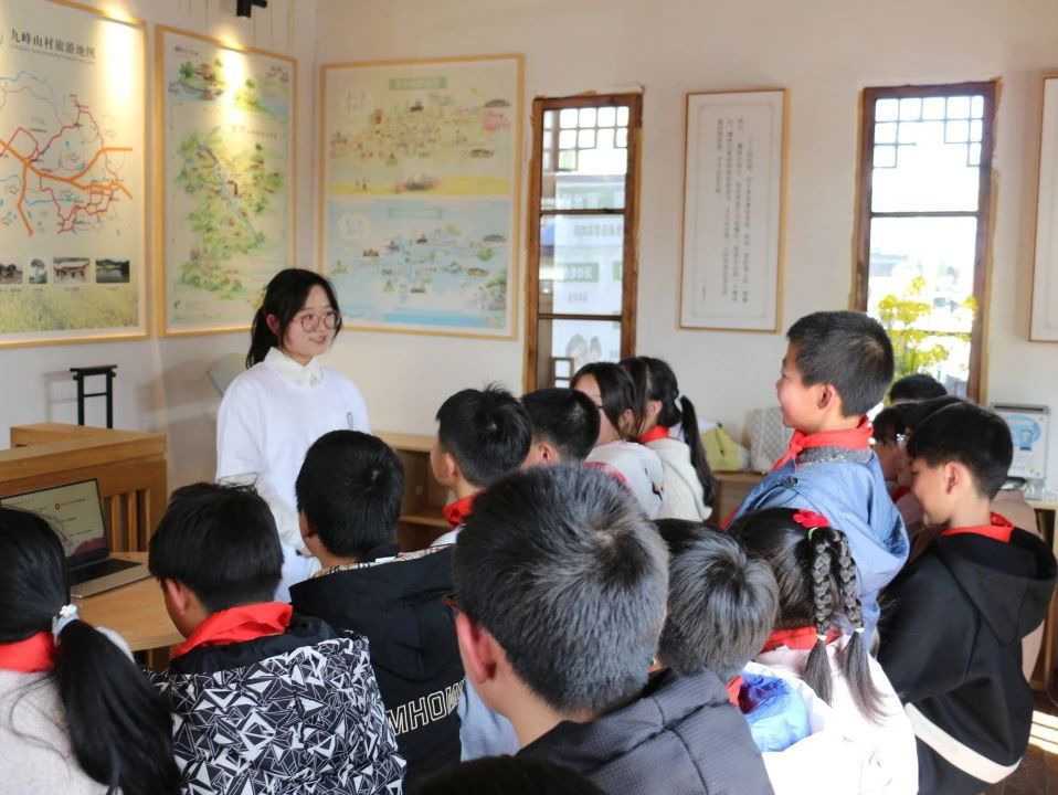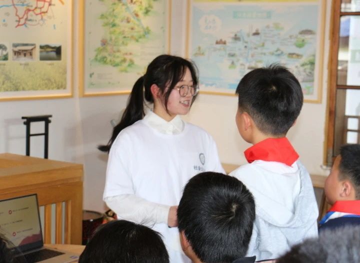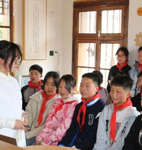 与此同时,在茶亭油菜花田的雷锋驿站里,也在进行着一堂“特别的”思政课。马院雷锋班宣讲团成员在给希望小学的同学们进行雷锋精神宣讲。