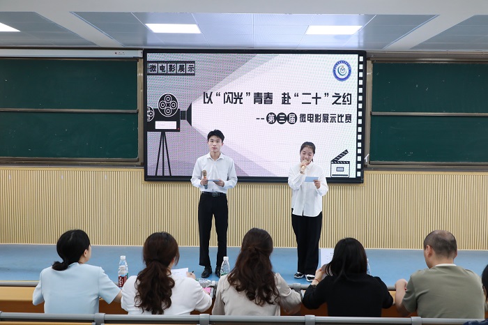 2023年4月20日下午两点,中南林业科技大学涉外学院马克思主义学院组织的“以‘闪光’青春,赴‘二十’之约”第三届微电影展示活动决赛在1310教室举行。传媒与艺术设计学院党总支书记王莉、信息与工程学院党总支书记潘舒群、经济学院党总支书记周迪、管理学院党总支书记钟依、语言文化学院党总支书记雷茜担任评委,马克思主义学院全体教师参加活动。