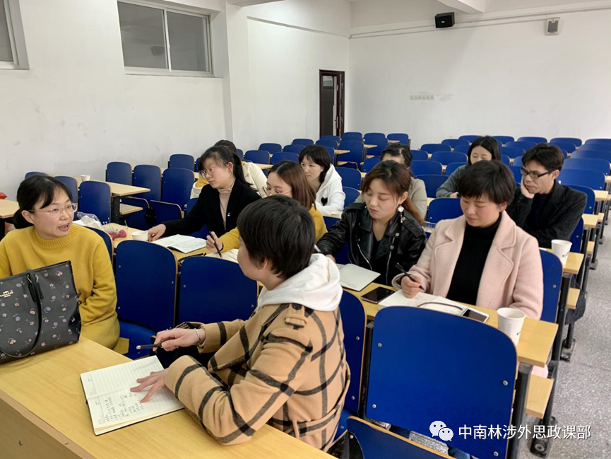 为了进一步优化课堂教学、提高思政理论课教学成效,形成相互学习、相互探讨、共同进步的良好氛围,4月15日下午,思政课部在2307开展教学经验研讨会,会议由姚湘莲老师主持,全体思政课教师参加会议。