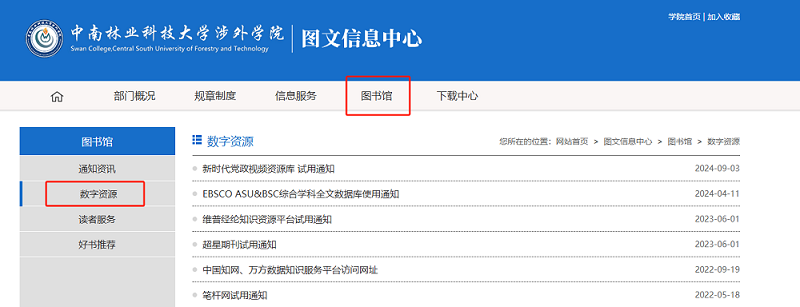 图书馆官网:https://swxy.csuft.edu.cn/twxxzx/tsg/