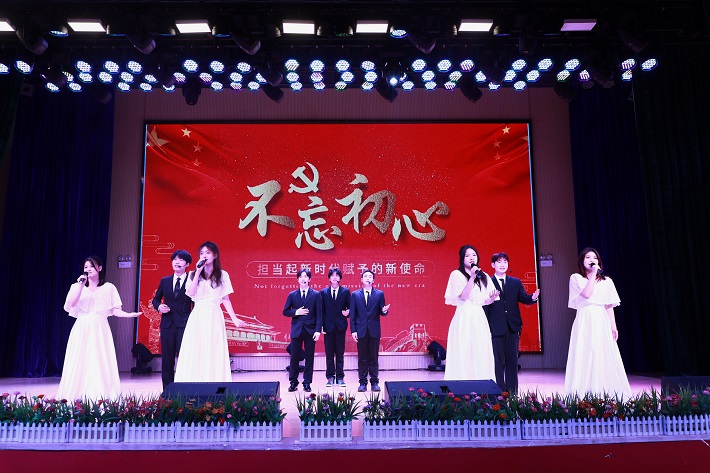 现场除了精彩激烈的比赛,更有学生演员们为大家带来的歌舞作品。朗诵《唐诗里的中国人》带领现场观众走过了唐诗里春与秋的代序;合唱《不忘初心》歌声优美动听,与我们的活动主题相呼应,唱出了“阅读沐初心,书香致未来”;舞蹈《党旗飘飘》带领大家跨过峥嵘岁月,飞扬的裙摆激动着每一位观众的心。