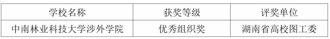 中南林业科技大学涉外学院图书馆高度重视、精心组织,师生积极参与,在书香班级、读书报告、诵读比赛、创新案例等项目中斩获佳绩,荣获省级奖项11项,其中包含“优秀组织奖”,充分展现了学院持续推进书香校园建设的扎实成效与育人成果。