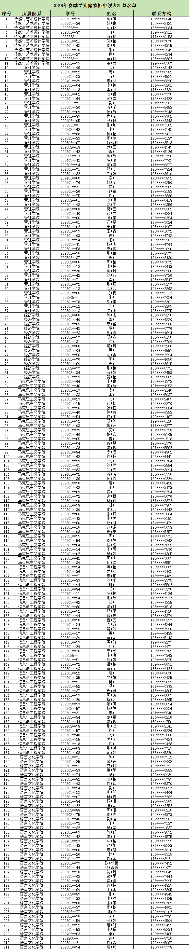 请申请到柜子的同学在规定时间内携带本人学生证原件,前往指定地点办理领取手续,需本人签字确认。