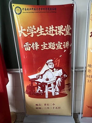为弘扬雷锋精神,发挥图书馆文化育人作用,3月25日,中南林业科技大学涉外学院图书馆走进青石二小,开展“大学生进课堂”雷锋月系列主题宣讲活动。引导孩子们学雷锋,让红色种子在童心生根发芽。