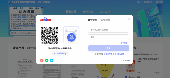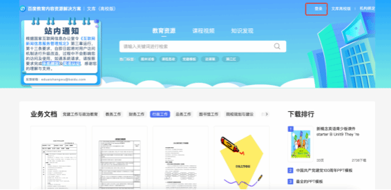 (1)浏览器搜索百度文库高校版或输入eduai.baidu.com,敲击回车,进入百度文库高校版,点击登录按钮,即可进入登录页面。