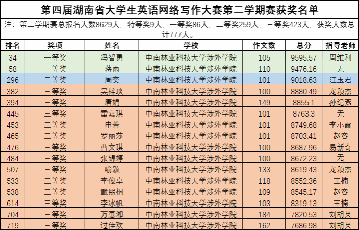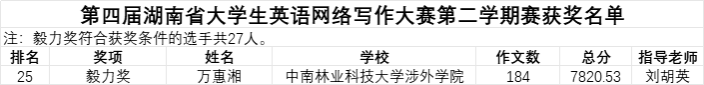 喜报 ! 中南林业科技大学涉外学院师生在第四届湖南省大学生英语网络写作大赛中斩获佳绩