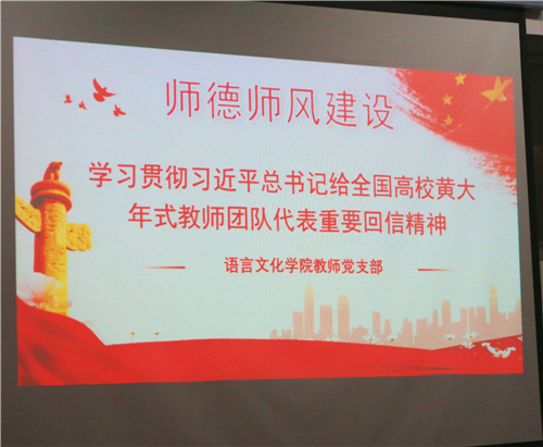 为深入贯彻习近平总书记关于教育的重要论述和全国师德师风建设工作视频会议精神,加强对新入职教师、青年教师、海外归国教师、高层次人才的党情、国情、省情、教情教育。语言文化学院教师党支部于10月28日下午组织开展了“师德师风建设”主题党日活动。