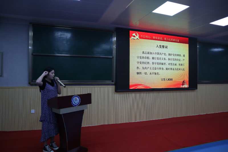 两名毕业生党员代表,在短短的两分钟内,以简短的话语,表达了自己对母校的感恩,论述了如何在新时代中做好一名新青年,与时代接轨,与国际接轨,做一名博古通今,学贯中西的优秀党员。并表示今后也要以一名优秀党员的标准严格要求自己,广泛学习,提高自己。