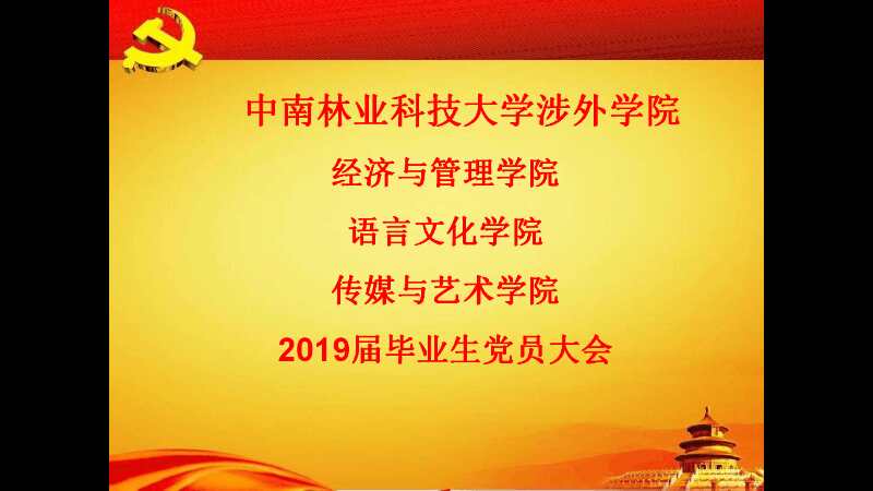 首先,由主持人介绍到场领导,中南林业科技大学涉外学院副院长盛均全、经济与管理学院党总支书记周迪、语言文化学院党总支副书记雷茜以及毕业生辅导员们到场参加了此次大会。