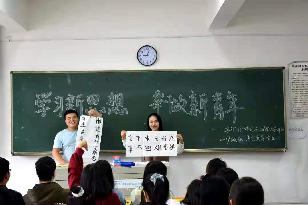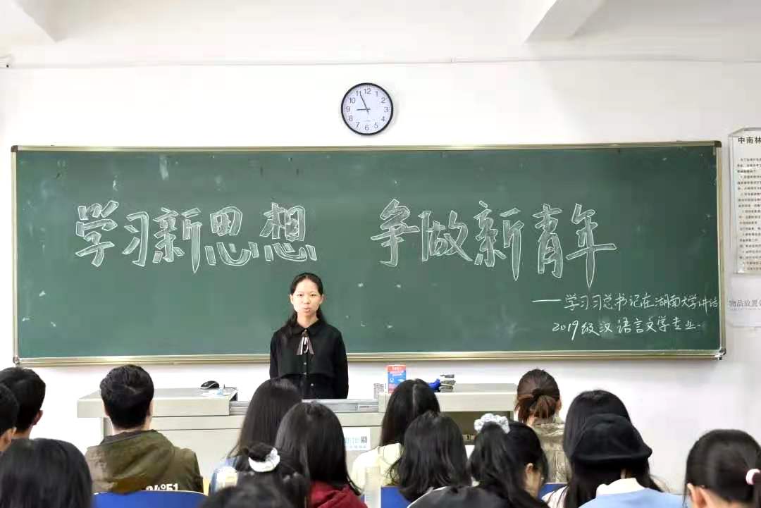 我院汉语言文学专业的同学们齐聚教室,进行了一次特殊的主题班会,深入学习习近平总书记在湖南大学的讲话内容。