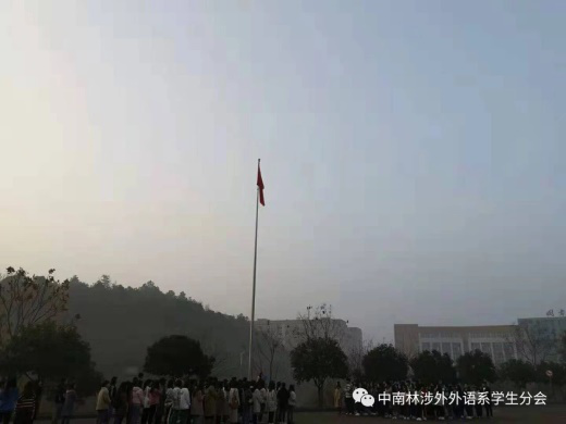 为了提高大学生的爱国意识,增强大学生的社会责任感。2019年3月18日7:20,中南林业科技大学涉外学院外国语学院各年级各班优秀学生代表、外国语学生会全体成员以及学工部辅导员老师在学院一教前坪举行了隆重而庄严的升国旗仪式,本次升旗仪式由外国语学院学生会国际部的龚雪花主持。