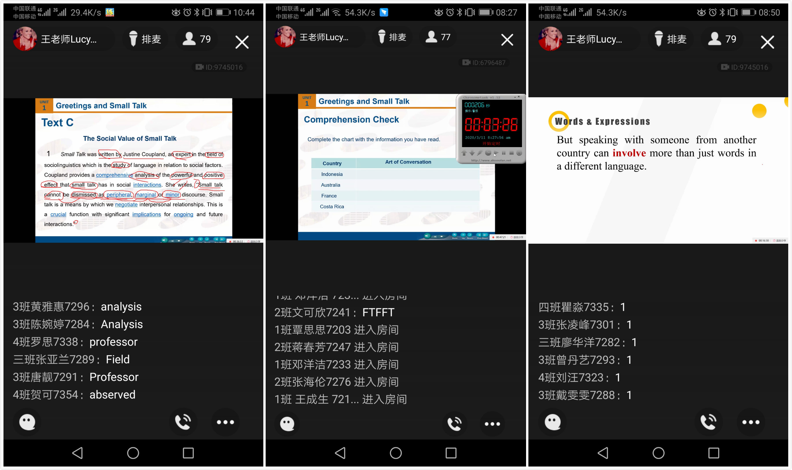 (在线课堂截图——学生手机端视野)