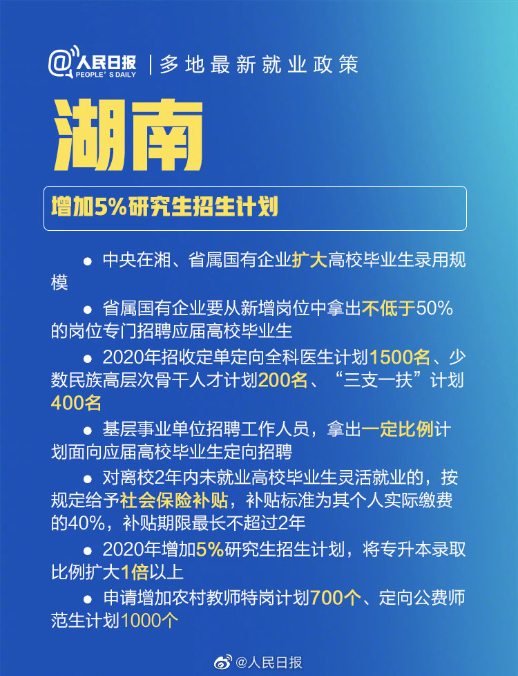 湖南省最新就业政策出来啦!对于就业补助和就业安排有更详细的说明: