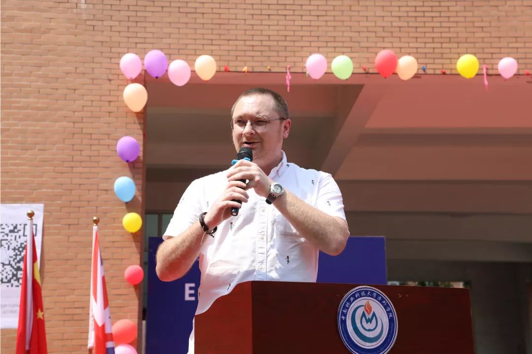 随后,学院董事长朱定强,副院长盛均全、马宗艳,外国语学院院长彭爱和一起为英语角揭幕。