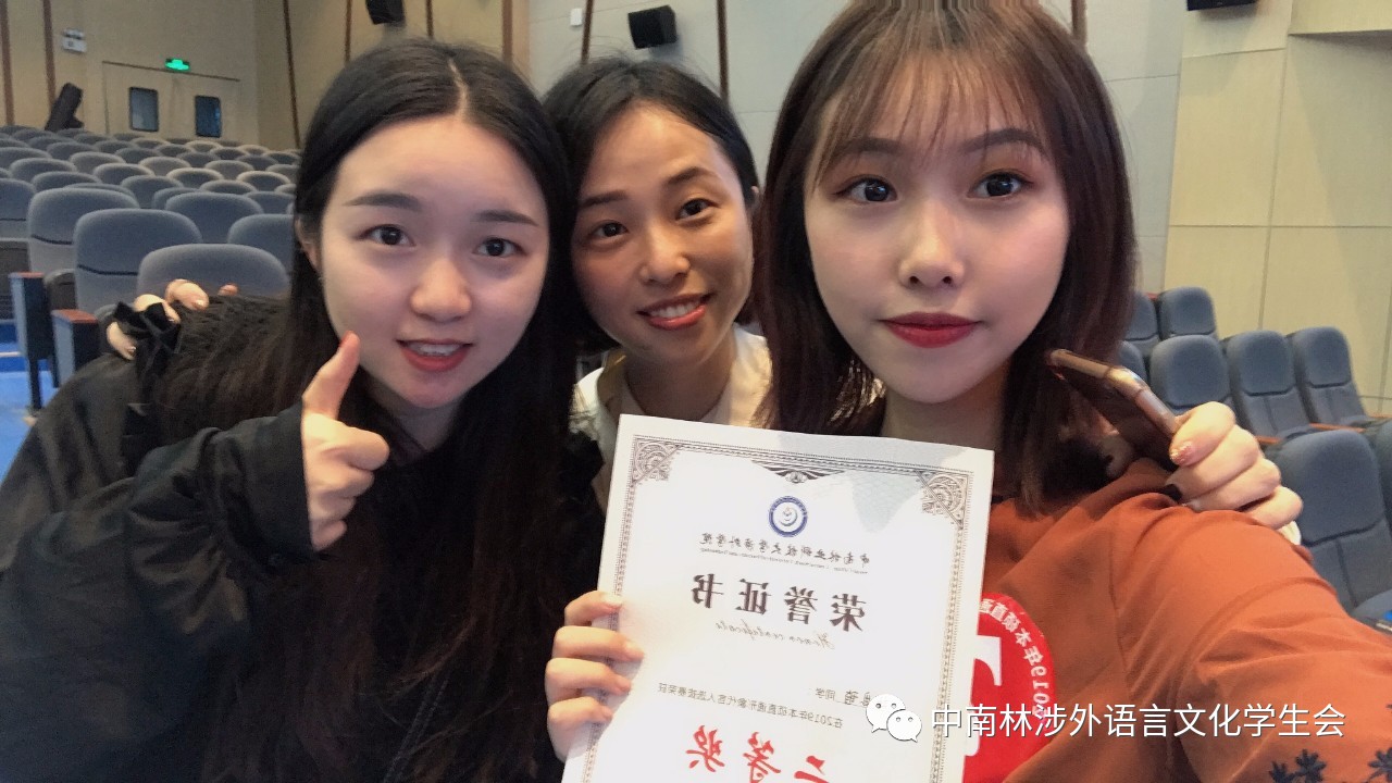 杨思琦同学: 参加这次比赛,让我收获的不仅是荣誉,更多的是让我学习到了很多新东西,对自我有了一个更明确的认识。我们大家在平时都要抓住机会,多参加活动去锻炼自己,尤其像我们英语专业的学生更要多多参加英语演讲比赛,多锻炼口语,在这同时也锻炼了我们的胆量。