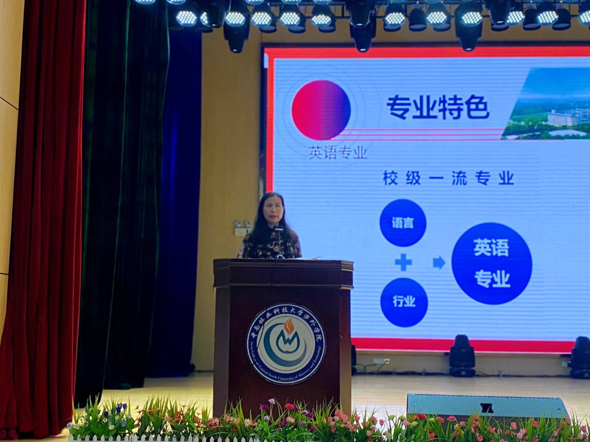 语言文化学院副院长李小霞首先发表致辞,她以“语言是桥梁,文化是灵魂”为核心,向新生们介绍了学院的办学历史、专业特色与育人理念。她提到,语言文化学院始终致力于培养兼具国际视野与文化自信的复合型人才,希望新生们能在未来的学习中,以语言为舟,探索不同文化的奥秘,在跨文化交流中传递中国声音。
