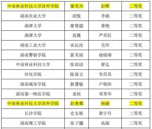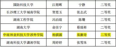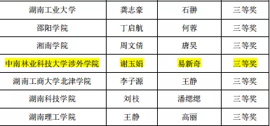 “外研社杯”全国英语阅读大赛湖南赛区复赛(本科组)(获奖信息从左到右依次为:学校、获奖人、指导老师、所获奖项)